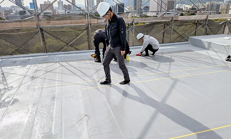 架台設置やアンカー打設が不要な「接着工法」を採用。電動工具による騒音・振動を低減し、施設稼働を止めずに施工可能です。防水層を傷つけないため、雨漏りリスクも最小化します。
