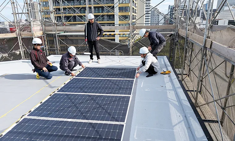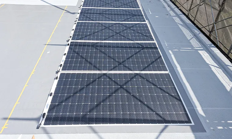屋根・壁設置型フレキシブル太陽光パネル施工の様子