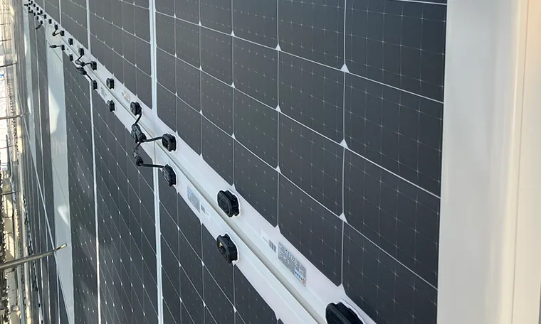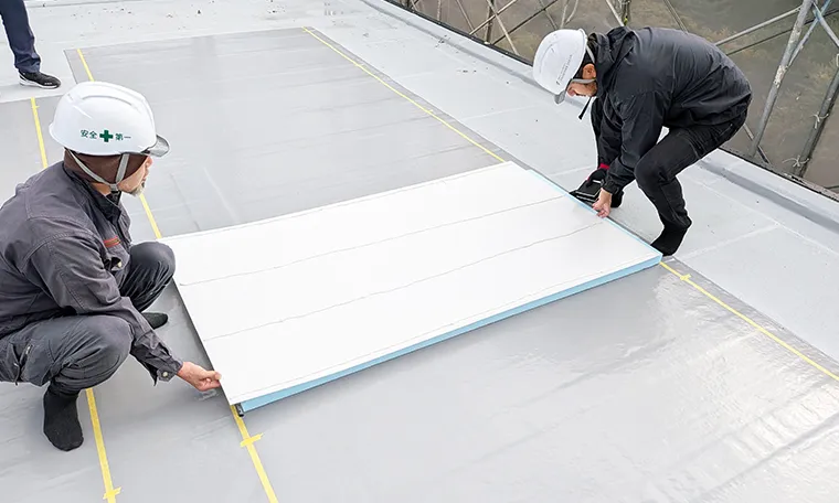 屋根・壁設置型フレキシブル太陽光パネル施工の様子