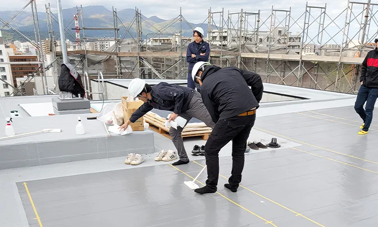 架台設置やアンカー打設が不要な「接着工法」を採用。電動工具による騒音・振動を低減し、施設稼働を止めずに施工可能です。防水層を傷つけないため、雨漏りリスクも最小化します。